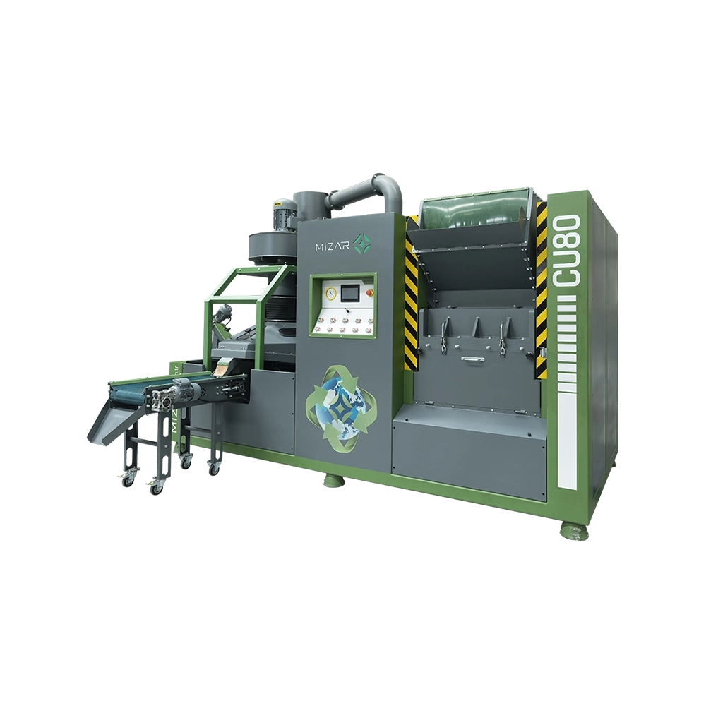 CUA Serisi kablo kırma makinesi, kabloların iç ve dış bileşenlerini verimli şekilde ayırarak geri dönüşüme kazandırır. Granülasyon, ayırma ve fan ünitelerinden oluşan entegre sistemi, kablo bileşenlerinin %99,6'sını etkili bir şekilde parçalayarak ayrıştırır. Malzemeler, manuel konveyör bandı veya akıllı PLC yazılımıyla çalışan SSH Serisi Ön Parçalama Makinesi ile otomatik olarak beslenebilir. Kompakt yapısı ve kullanıcı dostu PLC ile dokunmatik ekran kontrol paneli sayesinde kolay yönetim sağlar. CUA Serisi, yüksek kaliteli bileşenlerle dayanıklılığı artırır ve CE sertifikalarına sahiptir. Üç modelde sunulur: CUA S3, CUA M3 ve CUA L3.